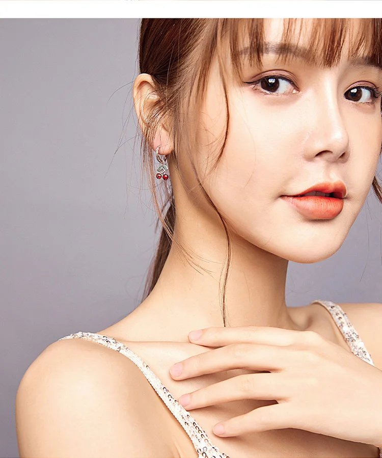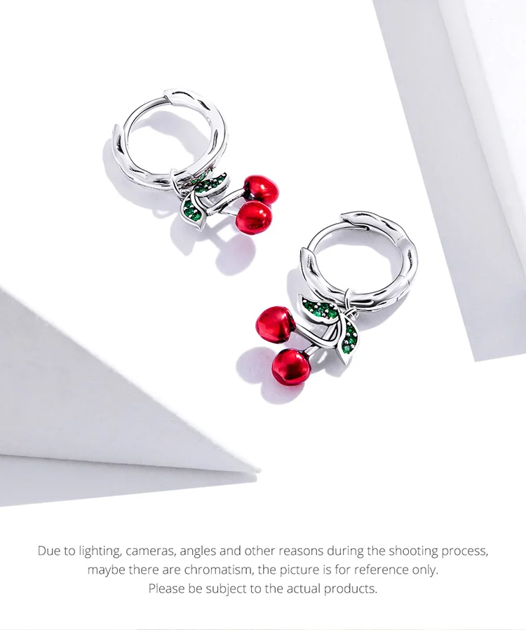 BAMOER 925 Sterling Silver Sweet Cherry Stud Earrings for Women Statement Fine Jewelry Brinco 2023 Bijoux SCE905