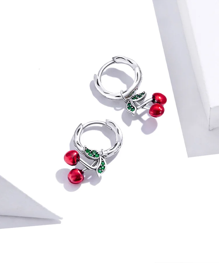 The clever combination of bright cherries and crystal green leaves adds a touch of freshness and sweetness to the ears.
